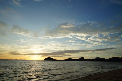 高屋神社で撮影後は父母ヶ浜へここで夕日と夕焼けを待ちます多くの人は駐車場の前でカメラを構えていましたが夕陽の位置が気に食わなかったので少し違う場所で構えましたSONY α7II + MC-11 + EF 17-35mm F2.8L USMもう現地に着いた時点で夕陽も夕焼けも綺麗…