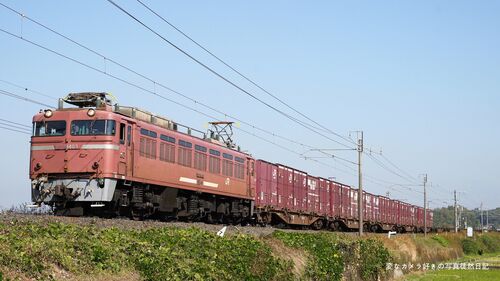 こんにちは、潔く銀です。この日は、素晴らしい快晴だったので朝から近場でEF81牽引貨物列車を撮りに行きました。まずは、懐かしのEF81 404号機から・・・