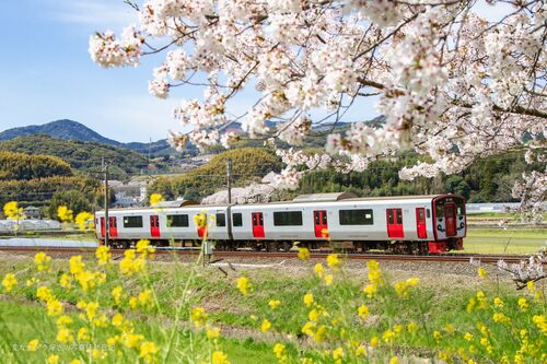 こんにちは、潔く銀です。この日も桜とSL人吉を撮影するために、西里-崇城大学前間でカメラを構えることにしました。まずは、4093レから記録しました。