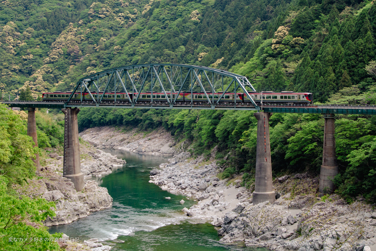 大歩危-小歩危といえば、吉野川を越えるための鉄橋が有名な撮影ポイントがあります。今回は、そこでGW期間中に増結された特急が撮りたいと思い、少し遠回りして立ち寄りました。