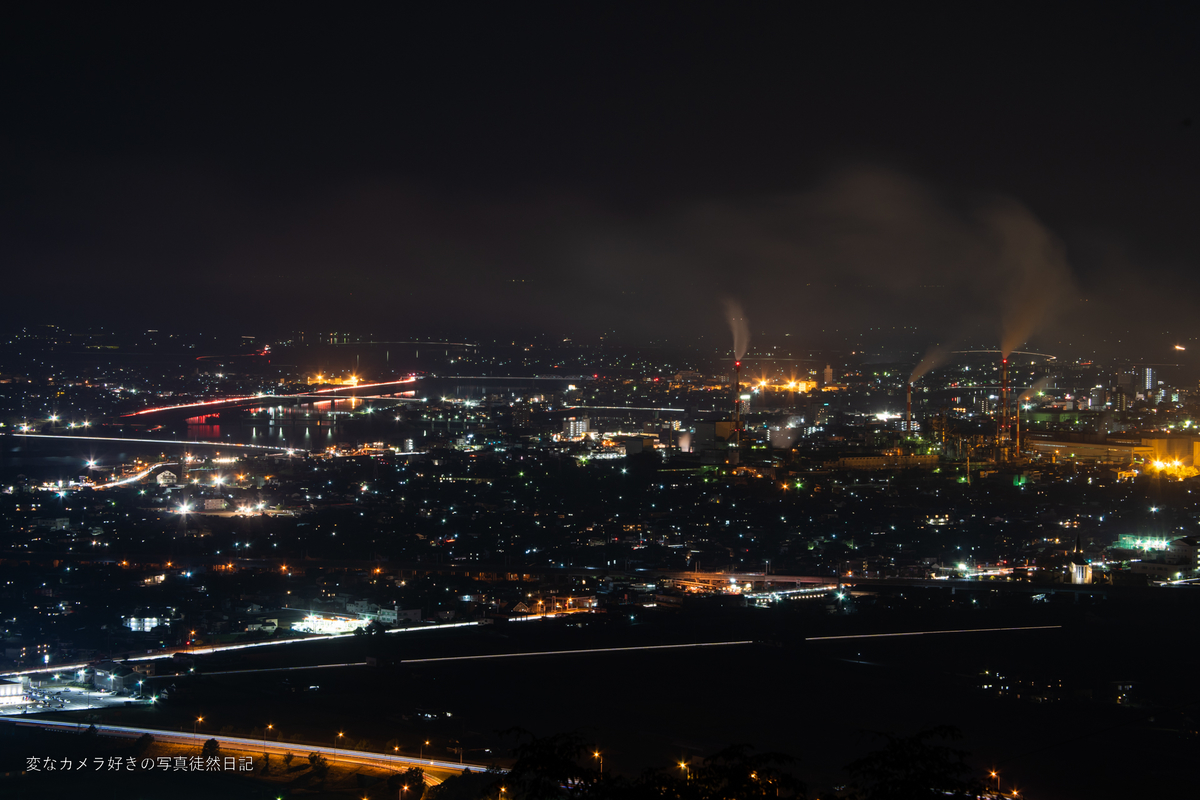 この日は、花火大会を撮影するために龍峯山に訪れました。花火大会終了後は、多くの人が我先にと出ていきました。どうせ、国道3号は恐ろしい渋滞をするだろうなと思ったので、しばらくのんびりと夜景を撮影することにしました。
