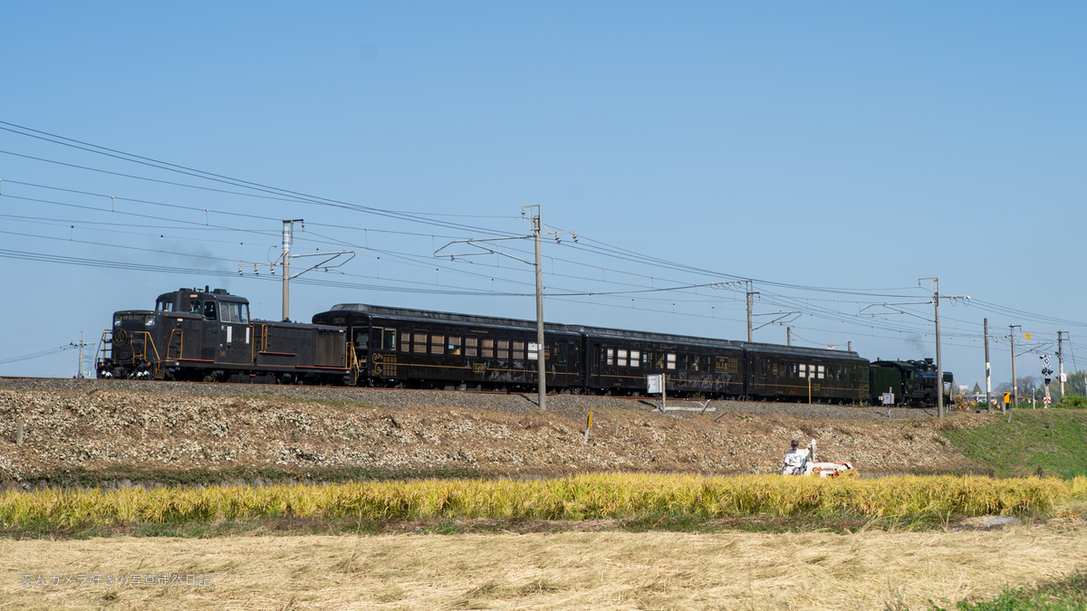 SL人吉号の出発時間は、ダイヤ改正後に少し早くなったため8057レと被るようになりました。8057レ撮影後はダッシュで撮れそうなところへ…秋晴れの中を走るSL人吉、良い感じで撮れました(^^)