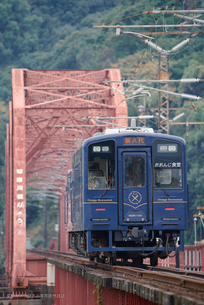 最初にやってきたのは、肥薩おれんじ鉄道の観光列車である「おれんじ食堂」でした。肥薩おれんじ鉄道にこういう観光列車があるのを初めて知りました。少し早めに現場に到着してゆっくり準備していたところに来たので、後追いしか撮れませんでしたが・・・