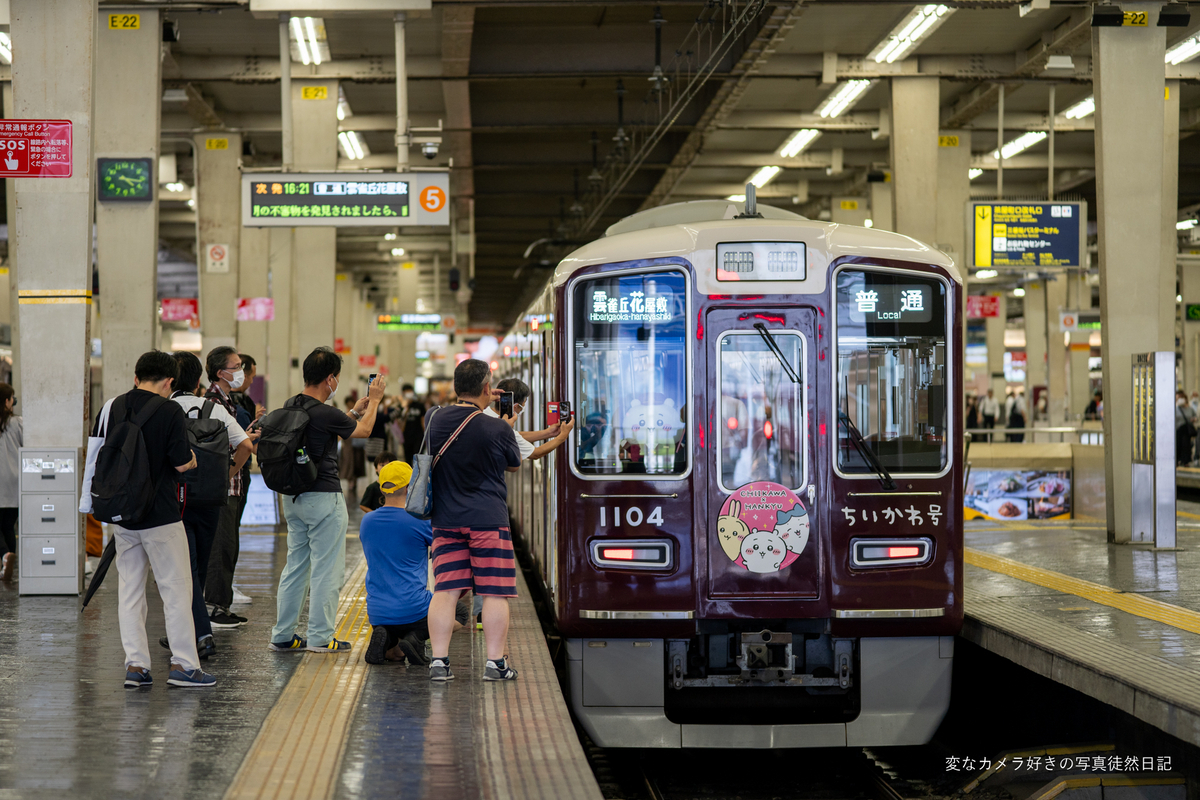 こんにちは、潔く銀です。この日は、夏休み中で少し時間があるということで、梅田駅でちいかわ号狙いで宝塚線を撮影することにしました。