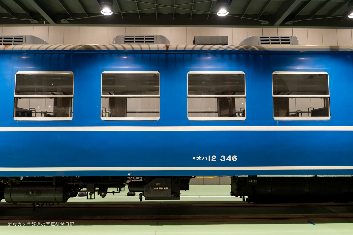 まずは、屋内に展示されている車両から見ました。九州にいると黒い客車しか見ないので、久しぶりに青い客車を見たなという印象でした。やっぱり、この色が良いなと改めて思います。