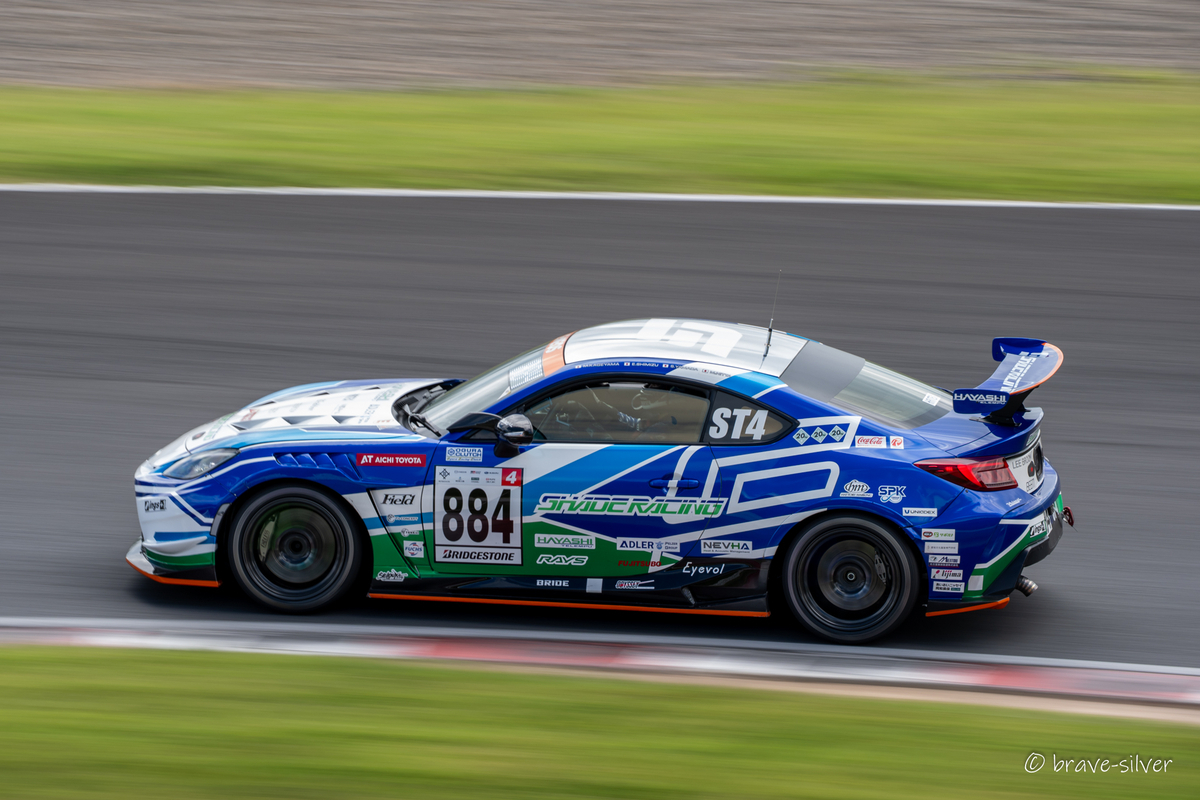 またST-4クラスになりますが、シェイドレーシング GR86です。スーパーGTも出ているシェイドレーシングですが、とことん86を出しているというこだわり感じるチームです。色も青と緑が特徴的で綺麗なカラーリングです。晴れで撮影した時は映えます。