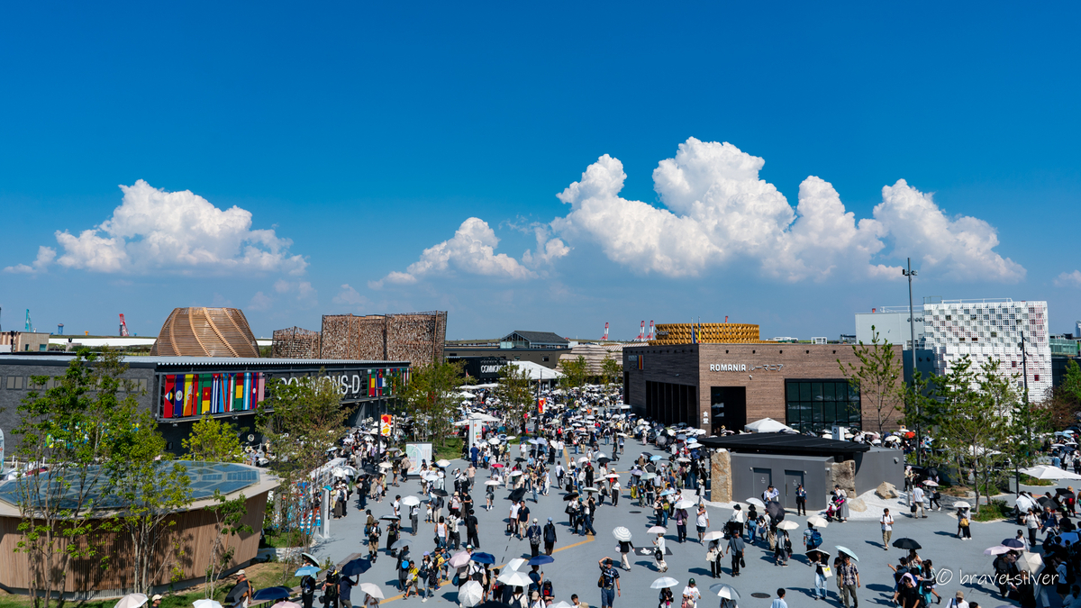 抽選予約はとんでもない倍率のようで、当たるのが宝くじ状態のようです。ヘルスケアパビリオンとか興味あったんですけどねぇ・・・建物の雰囲気が良くて写真だけ撮影しておきました。それにしても、空が綺麗で撮影日和という感じでした。